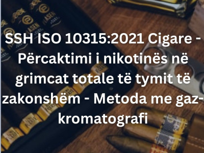 SSH ISO 10315:2021 "Cigarettes - Determination of nicotine in total particles of mainstream smoke - Gas chromatography method"