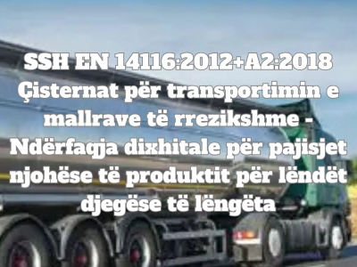 SSH EN 14116:2012+A2:2018 "Çisternat për transportimin e mallrave të rrezikshme - Ndërfaqja dixhitale për pajisjet njohëse të produktit për lëndët djegëse të lëngëta"
