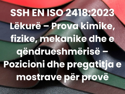 - SSH EN ISO 2418:2023 "Lëkurë – Prova kimike, fizike, mekanike dhe e qëndrueshmërisë – Pozicioni dhe pregatitja e mostrave për provë".