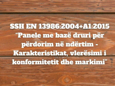 SSH EN 13986:2004+A1:2015 “Panele me bazë druri për përdorim në ndërtim - Karakteristikat, vlerësimi i konformitetit dhe markimi”