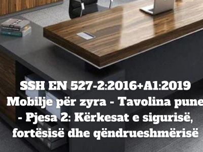 SSH EN 527-2:2016+A1:2019 Mobilje për zyra - Tavolina pune - Pjesa 2: Kërkesat e sigurisë, fortësisë dhe qëndrueshmërisë