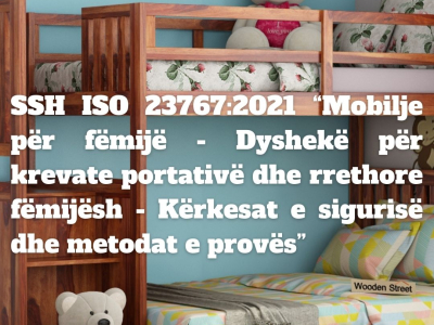 SSH ISO 23767:2021 “Mobilje për fëmijë - Dyshekë për krevate portativë dhe rrethore fëmijësh - Kërkesat e sigurisë dhe metodat e provës”
