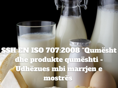 SSH EN ISO 707:2008 “Qumësht dhe produkte qumështi - Udhëzues mbi marrjen e mostrës (ISO 707:2008)”