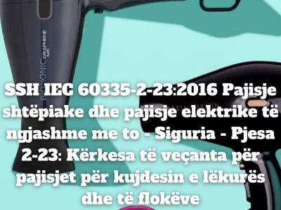 SSH IEC 60335-2-23:2016 Pajisje shtëpiake dhe pajisje elektrike të ngjashme me to - Siguria - Pjesa 2-23: Kërkesa të veçanta për pajisjet për kujdesin e lëkurës dhe të flokëve