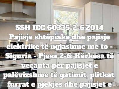SSH IEC 60335-2-6:2014 "Pajisje shtëpiake dhe pajisje elektrike të ngjashme me to - Siguria - Pjesa 2-6: Kërkesa të veçanta për pajisjet e palëvizshme të gatimit, plitkat, furrat e pjekjes dhe pajisjet e tjera shtëpiake të ngjashme me to"