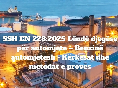 SSH EN 228:2025 Lëndë djegëse për automjete – Benzinë automjetesh - Kërkesat dhe metodat e provës