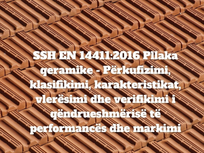 SSH EN 14411:2016 "Pllaka qeramike - Përkufizimi, klasifikimi, karakteristikat, vlerësimi dhe verifikimi i qëndrueshmërisë të performancës dhe markimi"