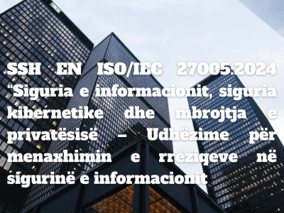 SSH EN ISO/IEC 27005:2024 “Siguria e informacionit, siguria kibernetike dhe mbrojtja e privatësisë – Udhëzime për menaxhimin e rreziqeve në sigurinë e informacionit".
