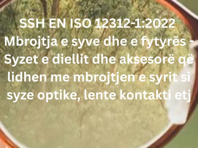 - SSH EN ISO 12312-1:2022 "Mbrojtja e syve dhe e fytyrës - Syzet e diellit dhe aksesorë që lidhen me veshjen (mbrojtjen) e syrit si syze optike, lente kontakti etj - Pjesa 1: Syzet e diellit për përdorim të përgjithshëm"